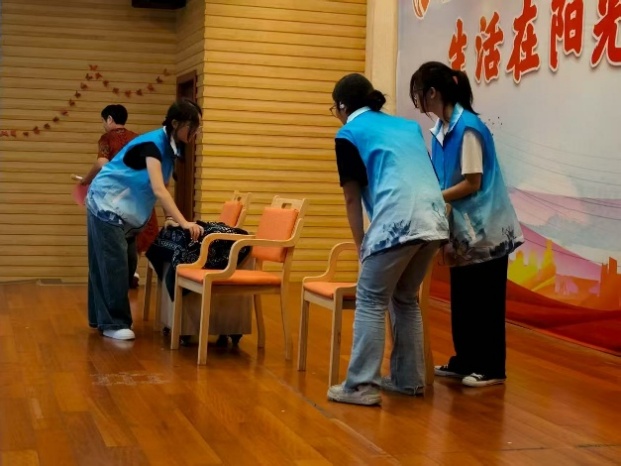 演出结束后,志愿者们有序引导老人离场,并一路细心护送。许多老人紧紧握住志愿者的手,连声道谢。而同学们也在这场温暖的互动中,收获了满满的幸福感——原来一句简单的问候、一次温暖的搀扶,就能为老人的生活注入如此多的欢乐。